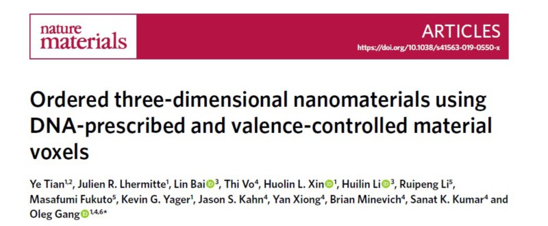 近日,Nature Materials杂志在线发表了凯发k8官网现代工程与应用科学学院田野教授与哥伦比亚大学Oleg Gang教授课题组基于DNA折纸框架结构在胶体粒子组装平台构建方面的最新研究成果“Ordered three-dimensional nanomaterials using DNA-prescribed and valence-controlled material voxels”。该研究以多面体DNA折纸框架为构建模块,将待装配的纳米粒子作为客体分子装入DNA折纸框架中,通过对DNA折纸框架的装配来实现对内部所包含纳米粒子的间接组装。实现该策略的关键困难之一是调控多面体DNA折纸框架结构顶点的设计以及顶点间连接与结构排列之间的关系。