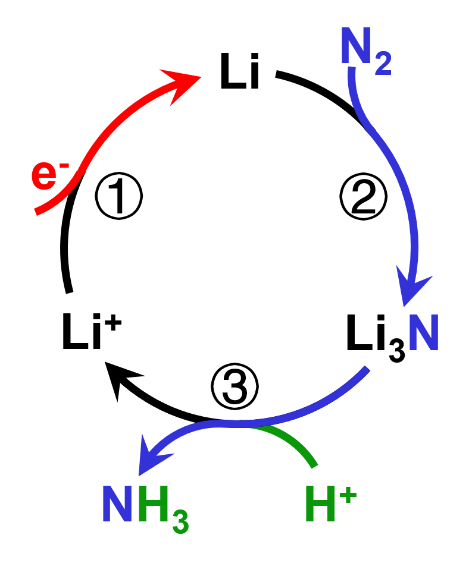 Li3N + 3H+ → NH3 + 3Li+ ?G=-760.98 kJ mol-1 (3)