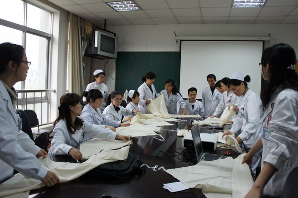 2012年4月20日下午,校医院在五楼会议室进行急救知识培训,各科室除值班以外的人员均参加了培训。此次培训的重点是心肺复苏和止血、包扎、骨折固定、搬运四大急救技能的实际操作。到场的每位医务人员都积极参与,反复练习,互相切磋,做到又快又好地完成急救操作。两小时的培训结束后,医务部要求大家会后继续抓紧时间练习,按照操作规程的要求,力求做到完美,迎接下一步的操作考核和比赛。(校医院)