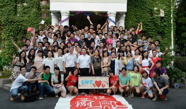 活动的压轴环节是一场师生互动的颁奖典礼,不需要华丽的舞台,老师与学生们一起簇拥在学院行政楼的阶梯前,听主持人宣读着每个特别设计的奖项及朴实而富有特色的颁奖词。平时在讲堂上一丝不苟的教授们此时变身颁奖嘉宾,台上台下一片其乐融融。与以往评定奖学金的形式不同,本次颁奖环节分为个人与集体两种奖项,从学业、友情、爱情各个维度,从升学、就业到个人奉献等各个方面为同学们设计了颇具创意和个性化的奖项。获得最浪漫情侣奖的刘佳琳和左名浩是同班同学,两人毕业之后有幸一起留在本院继续深造,这种缘分让很多同学非常羡慕。他们表示非常感谢老师和同学们的祝福,希望自己能经营好这份珍贵的感情也祝愿同学们都能找到自己的天下无双。被问到设计这些奖项的初衷,工程管理学院副书记张园园老师老师说,08级是90后的第一届毕业生,他们向往自由,敢于创新,中规中矩的伤离别已经不适合他们年轻而跃动的心,希望创意而富含个性的荣誉能给他们一个难忘的毕业季和快乐的回忆。在一片欢笑声中,院长李心丹教授代表全体教师深情祝愿学生们取得各自理想的成就之外能够在不同的人生道路上永远快乐。