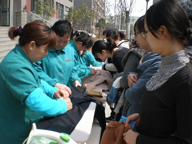 ?????? 12栋宿管钟智寿全程参与了第三组团活动的策划和实施,他和宿舍保洁员一起为近百名研究生缝补和熨烫衣物,受到同学们的热情欢迎。“有几位同学带过来一个坏掉的大行李箱,我们一开始也不知道怎么修理。后来十四舍的保洁员顾遵梅边研究边缝补,圆满地修好了”;而第二组团的宿管们则临时改行修理员,为同学们修理自行车。据了解,当天三个组团总共义务为同学们熨烫缝补衣物近130件,修理自行车近30辆。