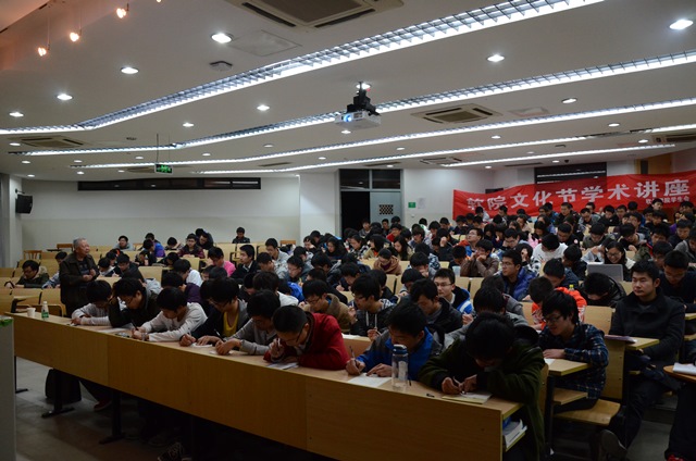 整场讲座洋溢着徐教授的爱国热情和对同学们殷切的希望。讲座接近尾声时,徐教授向同学们提出忠告:“记住,人生有限,学海无涯。大家团结起来,兢兢业业地学习。要学会三思,业精于勤。”