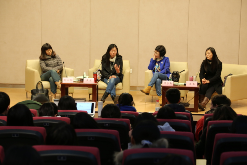 如果说被邀请的四位教授有什么共同点,最突出的一点就是皆为女性。因为对“性别”研究的情有独钟,她们坐到了一起。来自文学院主攻古代汉语的俞士玲教授,在古籍史料中挖掘两性的深意;来自法语系主攻法国文学的黄荭教授,以法国文学浪漫与独立的视角剖析现代女性;来自社会学院主攻城市社会学的闵学勤教授,以社会学的立场分析性别的多种可能性;来自新闻传播学院主攻媒介性别的王蕾教授,以大众传媒及社会舆论的角度论析女性与社会刻板印象。四位有着不同学科背景的女教授跨界携手,分别从各自研究的领域出发探讨两性与社会。谈到为什么会关注“性别”这个特殊的话题,各位虽契机不同,但生活是共通的理由。