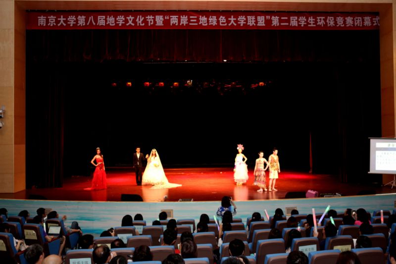 本届地学文化节活动创意无限、精彩纷呈,学术性与娱乐性兼具。“Reborn环保时装秀”倡导同学利用身边的废弃材料制作时装,吸引了全校众多院系百余人参赛,走秀照片一度风靡网络,点击量愈万。在本届地学文化节闭幕式上,“环保时装秀”的决赛也成为晚会的最高潮,八强选手穿着用蚊帐、横幅、海报、树叶、打印纸等等废弃材料做出的华美婚纱、性感短裙、青花瓷礼服等亮相。最后,由环境学院金嘉瑞一组四人凭借把环保融入生活的创作理念和精美的欧式宫廷风时装获得冠军。