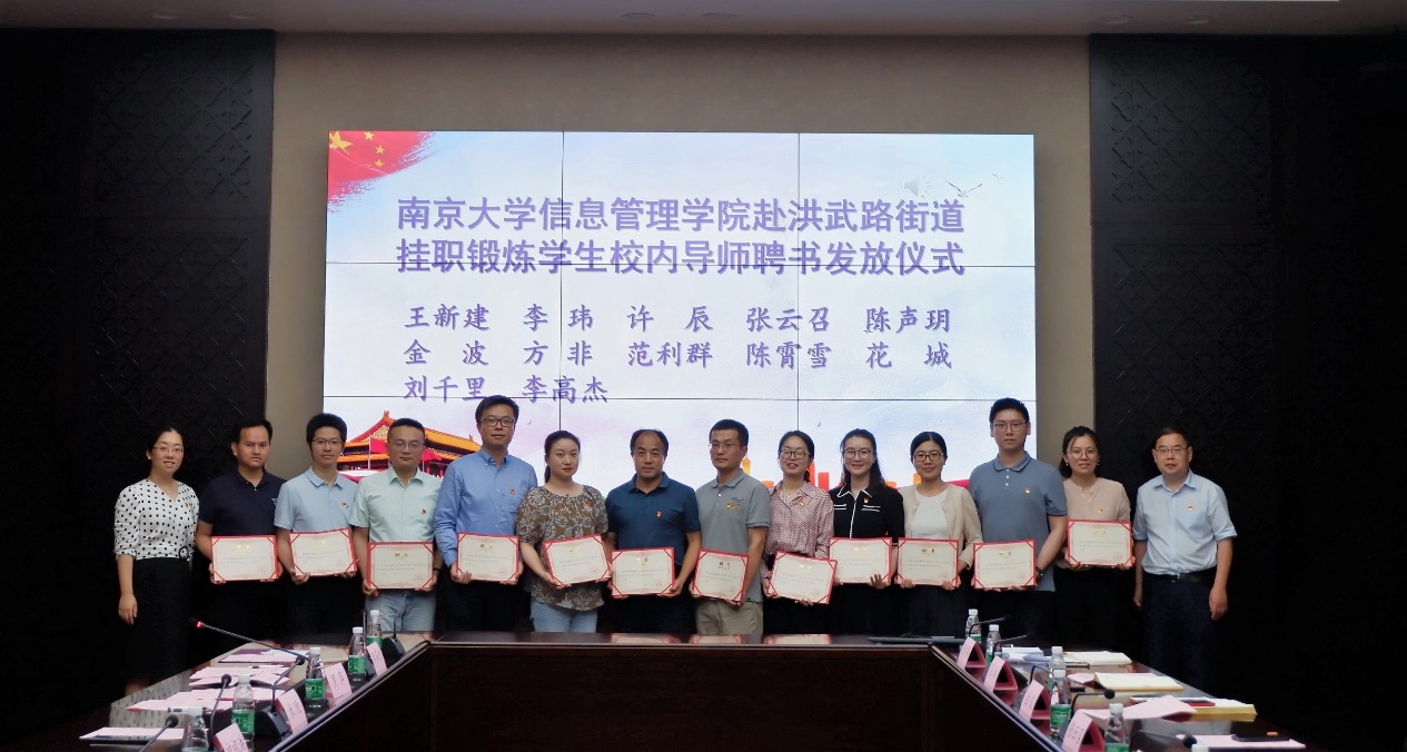7月15日下午,"校地共建育新人学史力行显担当"主题党日活动暨凯发k8官网赴洪武路街道挂职锻炼学生校内导师聘任仪式在仙林校区行政南楼举行。活动由校机关党委校办法制办党支部、凯发k8官网市秦淮区洪武路街道党工委及信息管理学院党委联合举办。活动特邀洪武路街道政协工委主任、秦淮区委党史学习教育第一巡回指导组组长郁险峰,洪武路街道马府街社区原党委书记、现四级调研员米晅与会;校长办公室、法制办公室主任、校办法制办党支部书记杭祝洪,信息管理学院党委书记姜迎春,机关党委副书记范赟及校办法制办青年管理骨干、信管学院师生代表等参加活动。活动由信管学院党委副书记罗萍主持。