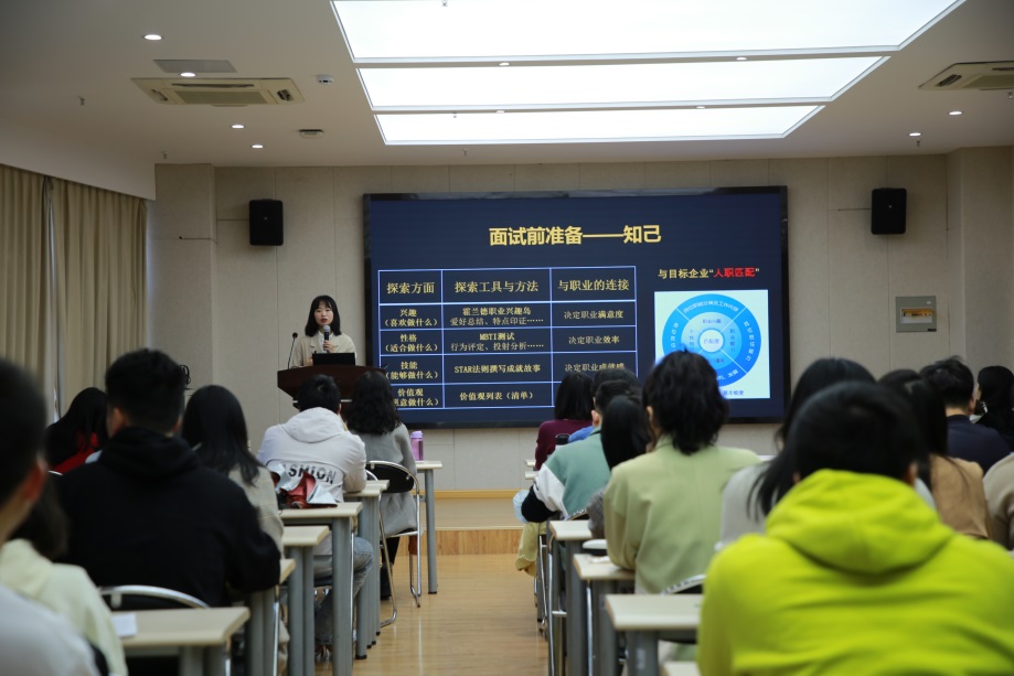 3月10日,大气科学学院辅导员毕菲菲为同学们做单面主题分享。她从面试前准备、面试技巧和建议三个方面作了详细讲解。她细致分析了面试中的经典问题,鼓励同学们多进行实战模拟和经历积累,及时做好思考和反馈。随后,赵玉倩、李敏、李金津老师开展分组指导,帮助同学们掌握STAR-L法则,系统梳理并分享自身实践经历,提升自身的求职自信。