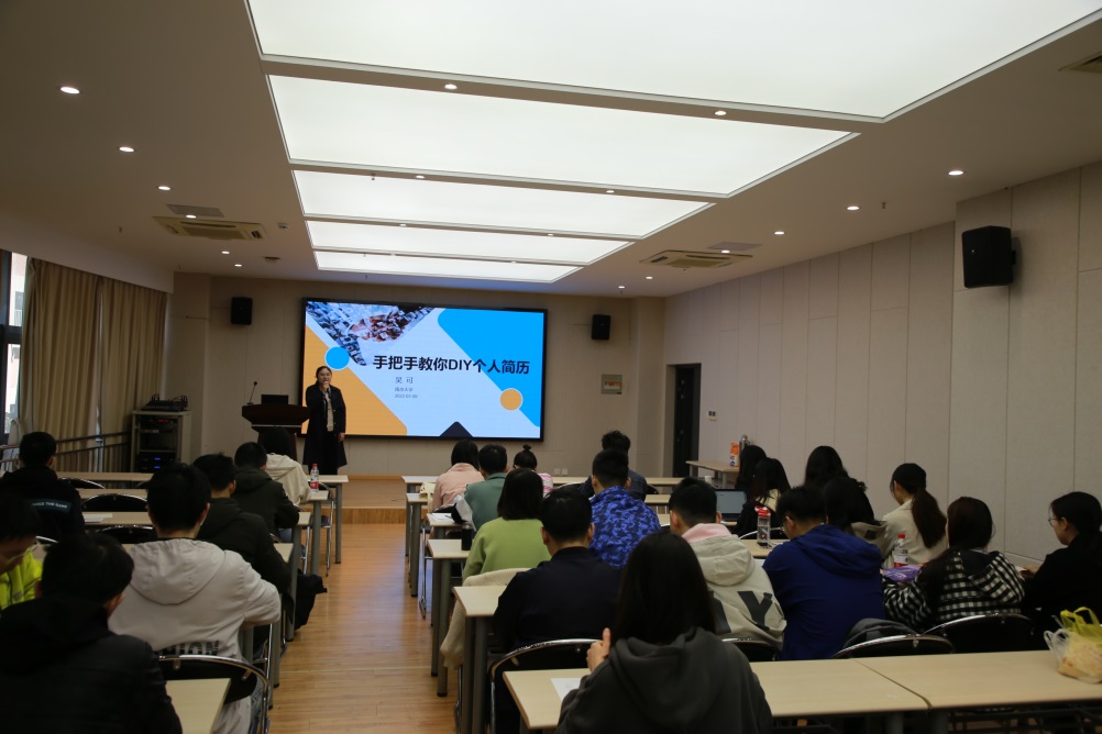 3月9日,安邦书院学生事务中心主任吴可以"手把手教你DIY个人简历"为题,为同学们作集中指导。她从简历是什么、写什么、怎么写、怎么投四个方面,生动讲述了简历从撰写到投递的全过程,点明了过程当中的各类注意事项,帮助同学们对简历有了更加清晰深刻的认识。随后,吴可与李敏、李佳、舒翼四位老师开展分组指导,以互相交流修改简历、讲解简历修改案例相结合的方式有效提升同学们的简历制作水平和技巧。