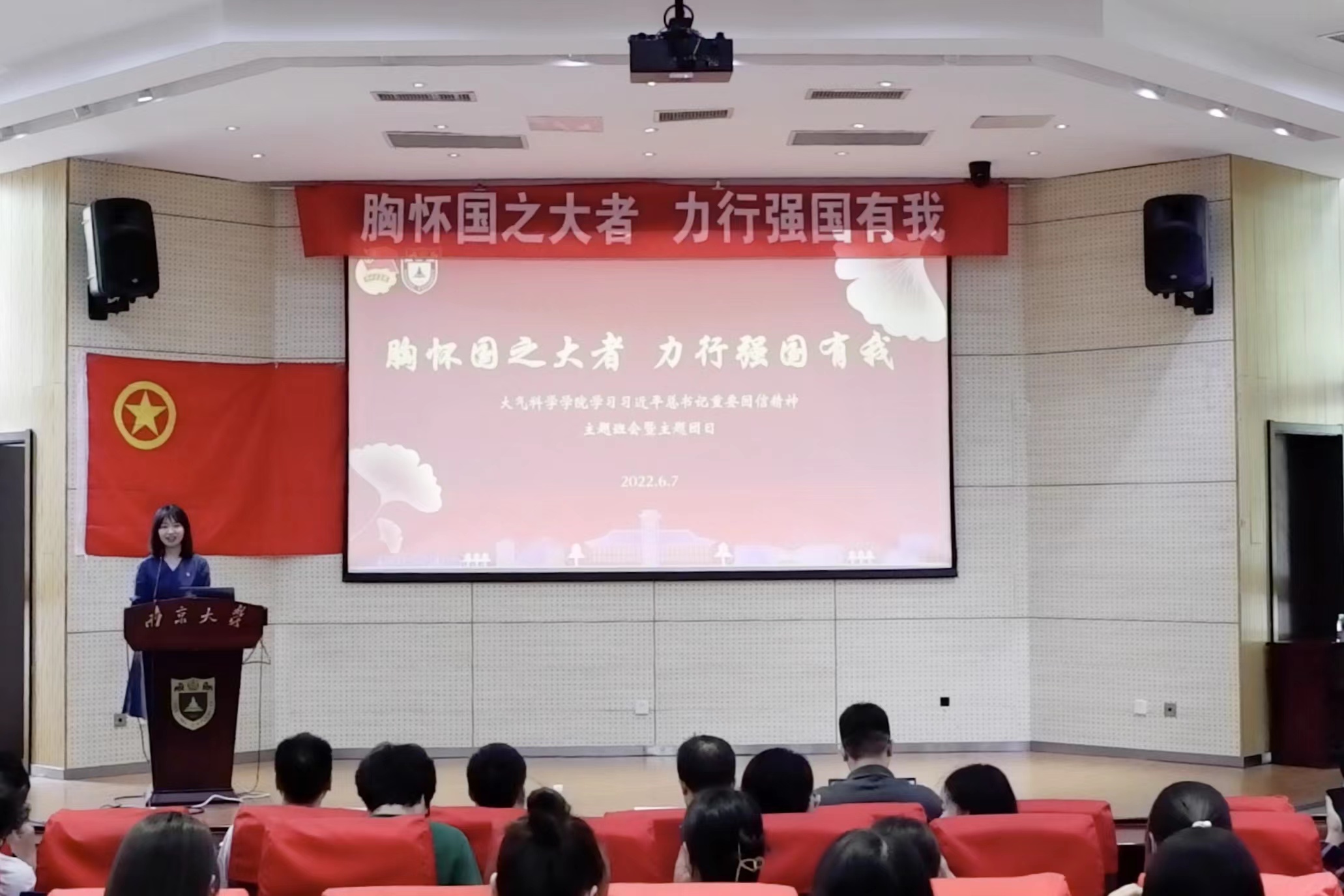 6月7日下午,大气科学学院举办"胸怀国之大者力行强国有我"学习习近平总书记重要回信精神主题班会暨主题团日。大气科学学院党委书记潘益农,党委委员王欢,留学归国青年学者代表、教授张彦旭,2020级本科生班主任、副教授董新奕和各年级学生代表参加活动。活动由大气科学学院辅导员毕菲菲主持。