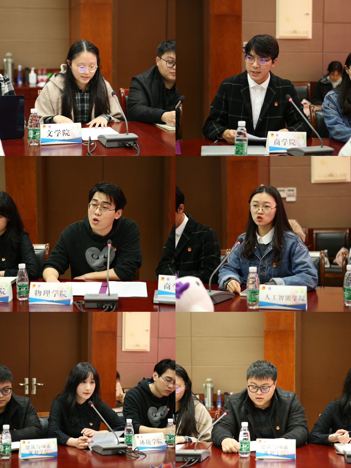 文学院团委、商学院团委、物理学院团委、人工智能学院团委、环境学院团委、建筑与城市规划学院团委学生负责人围绕团员思想教育、团组织建设、“团社共建”品牌项目、团员发展服务、党建带团建等主题进行交流发言,分享工作经验。