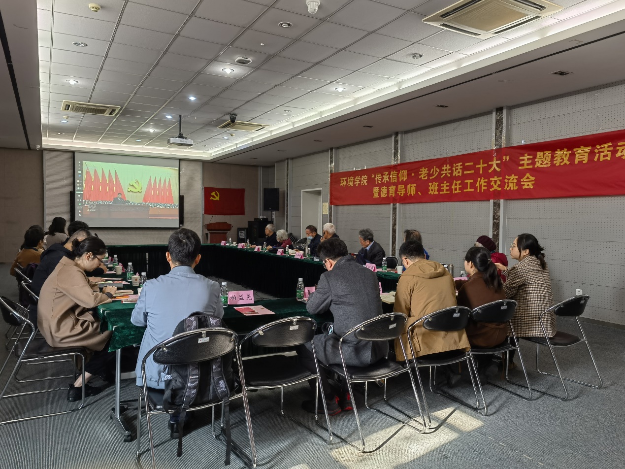 为进一步深入学习贯彻党的二十大精神,全面落实习近平总书记给我校留学归国青年学者的重要回信精神,引导学院全体师生员工切实将思想和行动统一到加快建设"第一个凯发"工作上,2022年11月25日,环境学院党委在环科楼组织开展"传承信仰·老少共话二十大"主题教育活动暨德育导师、班主任工作交流会。学院党委书记刘建萍、退休教师代表、教师党支部书记、德育导师、班主任、党委秘书、辅导员以及学生党员代表共30余人参加活动。活动由环工系硕士第二党支部书记盖耀铭主持。