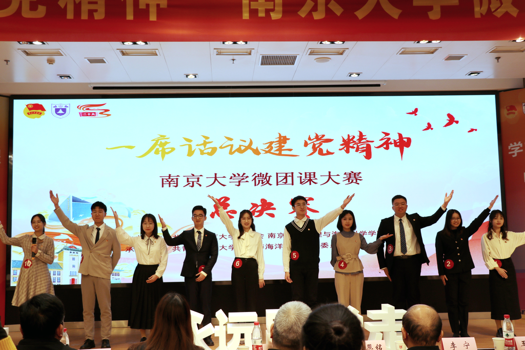 随后,入围决赛的10位选手依次进行了自我介绍和风采展示,共同喊出"学习二十大 永远跟党走 奋进新征程,‘一席话议建党精神’微团课大赛,我们来了"的热血宣言,展现出团员青年的蓬勃朝气。10位选手围绕伟大建党精神,融会学科专业特长,结合自身实践经历,展开了微团课讲授分享,分享扎根基层,挥洒青春的深刻感悟;追溯百廿凯发、寻根鼓楼的厚重历史;诉说雨花英烈、千秋凛然的大义故事;讲述红色热土、绿色林地的辉煌传奇。