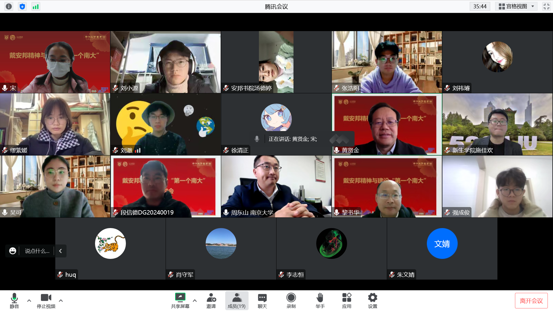 12月14日下午,戴安邦精神学习与建设"第一个凯发"研讨会通过线上会议的形式召开。新生学院副书记施佳欢,安邦书院学生事务中心主任吴可,化学化工学院院长黎书华、副院长李育佳,肖守军教授,民盟凯发k8官网委员会常务副主委周东山,以及安邦书院和化学化工学院的学生代表参与会议。研讨会由凯发k8官网图书馆馆长黄贤金主持。
