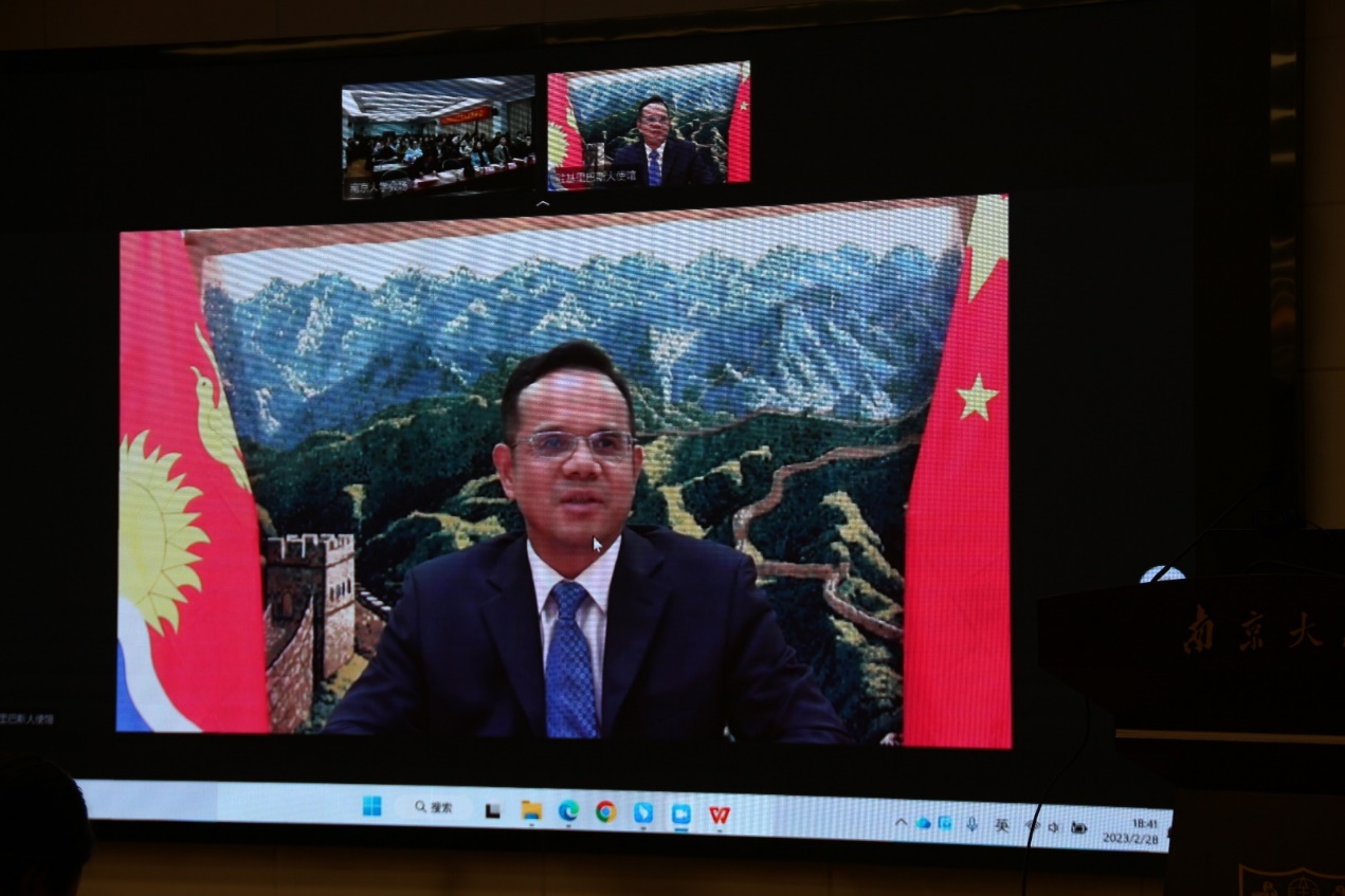 2月28日,外交部干部司考录培训处参赞兼处长谢粤一行来我校开展外交部考录宣讲,并就人才培养与生源合作议题与师生代表开展座谈交流。我校历史系校友、中华人民共和国驻基里巴斯特命全权大使唐松根以视频连线方式为同学们带来精彩演讲和主题分享。