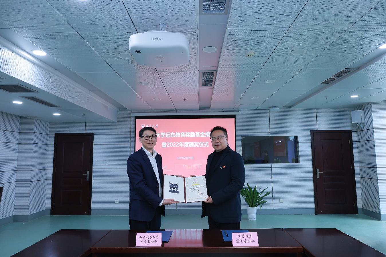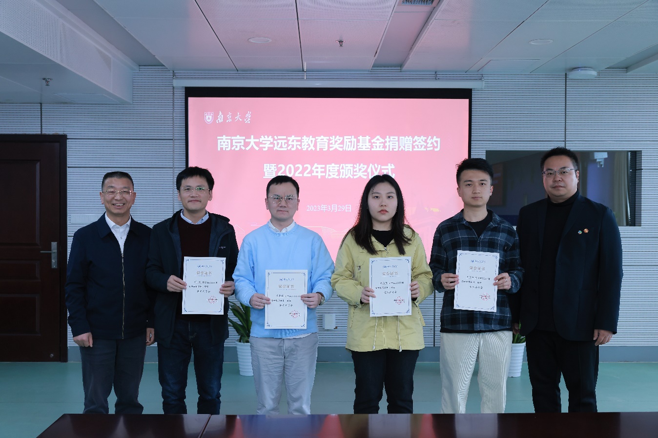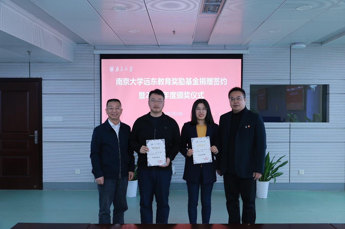 3月29日,凯发k8官网远东教育奖励基金捐赠签约暨2022年度颁奖仪式在鼓楼校区安中大楼隆重举行。远东股份资深合伙人、董事会秘书、首席行政人力资源官、远东大学执行校长邵亮出席仪式并为获奖师生颁奖。远东控股集团党政办公室主任助理康娜,远东股份总经理办公室首席行政人力资源官秘书梁毅,远东控股集团党政办公室研究生管培生李潇,凯发k8官网校友事务与发展工作处处长、教育发展基金会秘书长张锁庚,商学院党委书记刘春林,经济学院副院长、商学院校友与发展办公室主任孙宁华,管理学院副院长、商学院本科生教学与培养办公室主任贾良定,商学院党委副书记王宇伟以及获奖师生代表参加仪式。王宇伟主持仪式并介绍本次捐赠项目概况。
