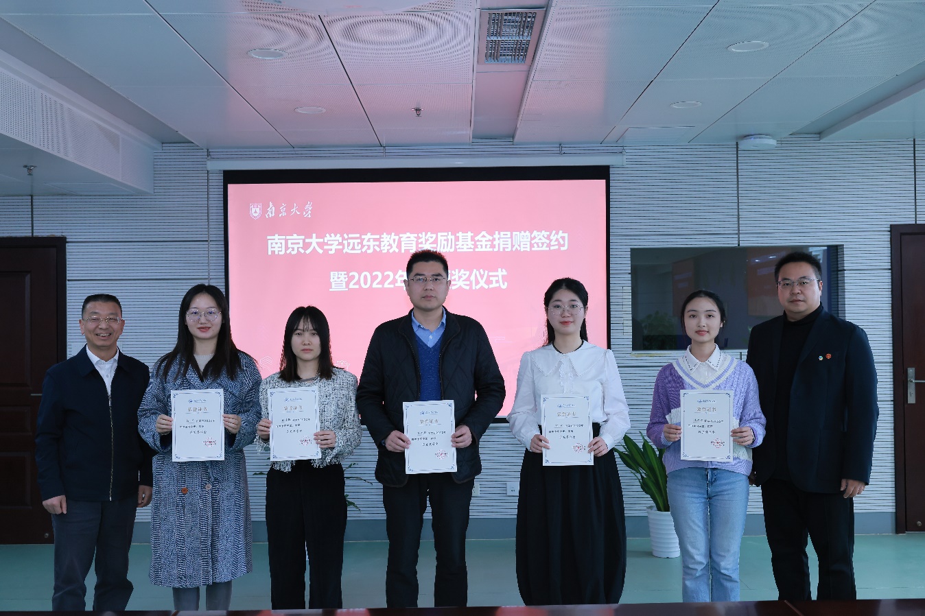 孙宁华宣读《2022年度远东奖学金、奖教金颁奖决定》。邵亮和贾良定共同为获奖师生颁发证书。