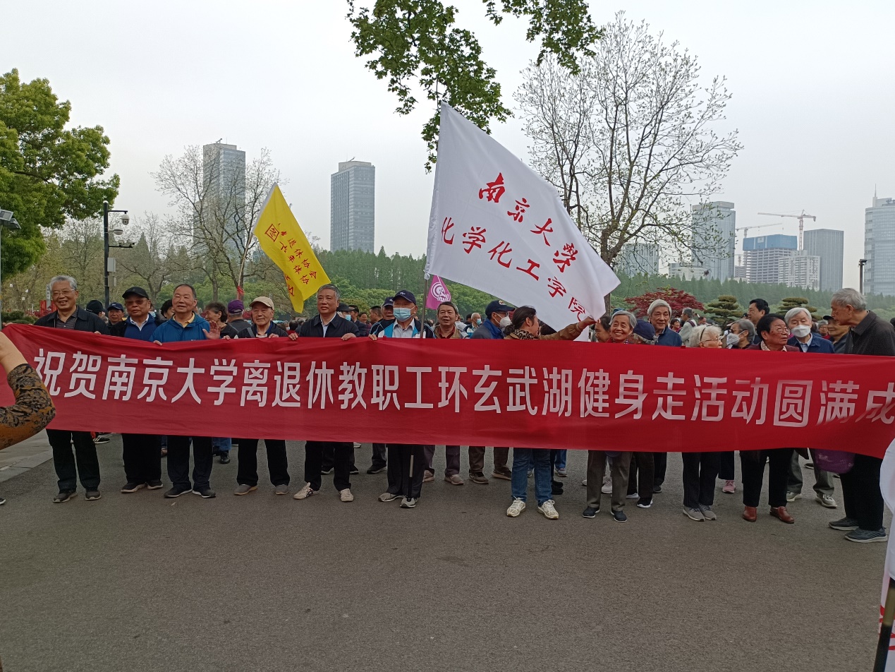 4月14日上午,我校离退休教职工环玄武湖健身走活动在玄武湖公园举行。校退休协会理事长凌元元、校退协副理事长兼秘书长杨圣伟、校退协常务理事等参加了活动。