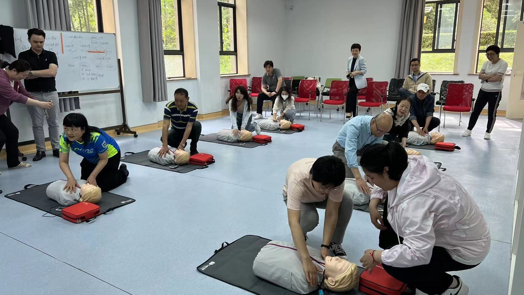 在随后的三天里,中心中外师生分期分批前往医学院进行学习和训练。本次为期四天的培训,有效地提高了中心师生在突发现场的救治处置能力,增强了中心师生现场急救意识,提升了中心师生紧急状态下的基本急救技能,这为中心师生今后遇到突发状况实施现场急救奠定了良好基础。