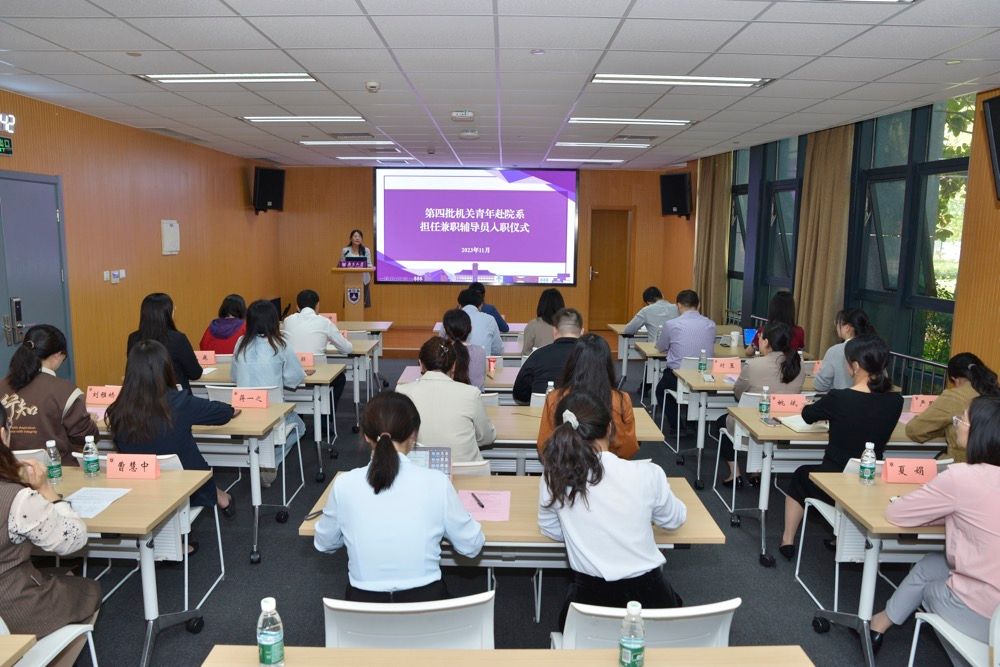 接收院系党委副书记、入选机关青年干部参加仪式。会前,第四批兼职辅导员还观摩学习了第三批兼职辅导员结项述职,分享经验、交流心得。
