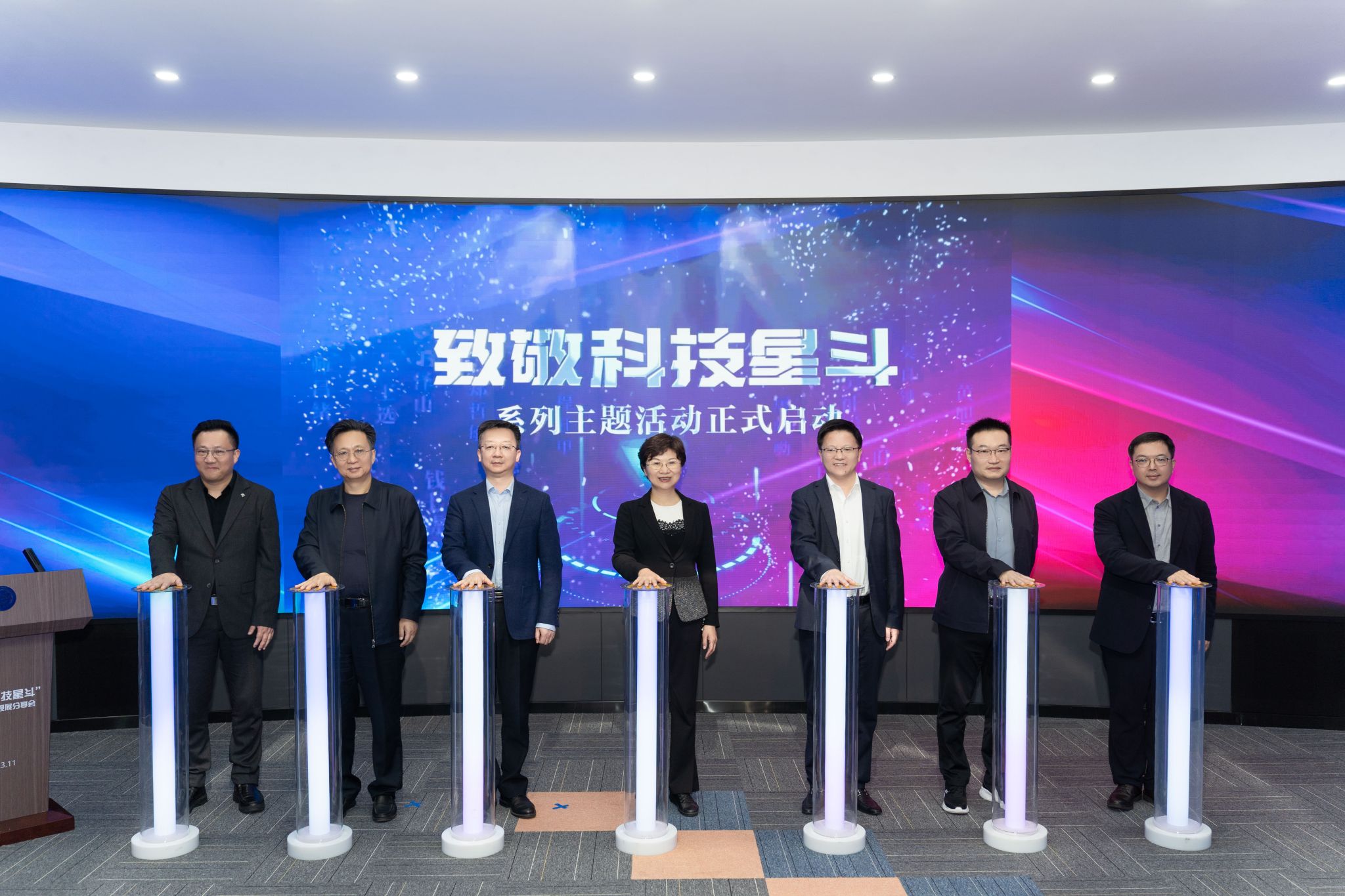 徐宁副部长、顾雷鸣总编辑、陆峰副台长、刘旭东巡视员、李千目副主席、尚荣教授、朱炎校长共同启动“致敬科技星斗”系列主题活动。
