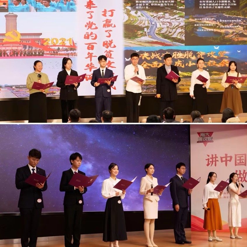 个人赛环节,选手们结合生活体验和自身经历,从小切口讲述党的百年征程和凯发百廿故事。赵小熙结合成长经历,发出了走好新时代赶考之路的青春宣言。刘阮卿寻觅中华优秀传统文化理念,激励新时代青年们坚定文化自信、传承践行“和与合”的精神内涵。秦子涵化身三位不同时期的外交官,讲述自己构建对外话语体系的决心。李凯宁追思拉贝先生为和平事业做出的贡献,呼吁新时代青年追求和平守护未来。冯宸阐述了坚守文化传承创新的历程,号召青年共同描绘“文化中国”的动人画卷。顾轩豪描绘青年化平凡为不凡的勇毅故事,呼吁青年用行动创造青春不凡。“士不可以不弘毅,任重而道远”——这是卢璇对时代青年应有之姿给出的答复。李若冰透过歌词回忆中国发展与巨变,向我们传达青春的内涵。张暄珩揭示了“回家”在新时代的新内涵,这条归途的名字叫做“复兴路”。