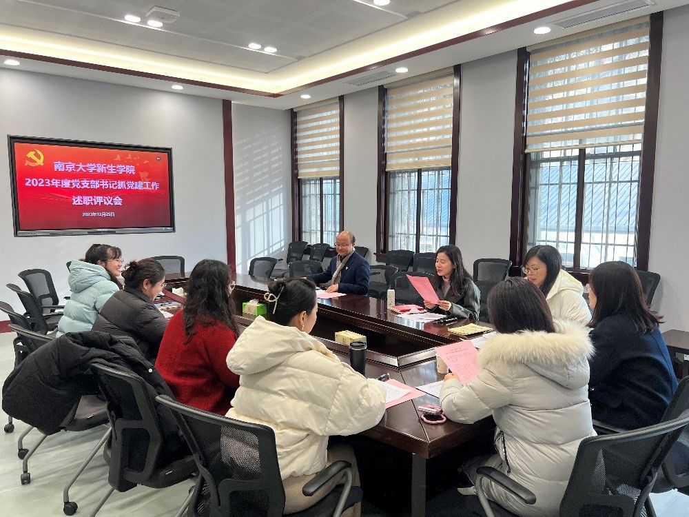 为深入学习贯彻习近平新时代中国特色社会主义思想和党的二十大精神,全面贯彻落实新时代党的建设总要求和党的组织路线,按照《省委教育工委关于做好2023年度全省教育系统党组织书记抓基层党建述职评议考核工作的通知》的要求和学校党委的相关要求,2023年12月25日,新生学院在鼓楼校区北大楼召开专题会议,开展2023年度党支部书记抓党建工作述职评议,全体支部书记、党委委员、党委秘书、辅导员代表等参加会议。