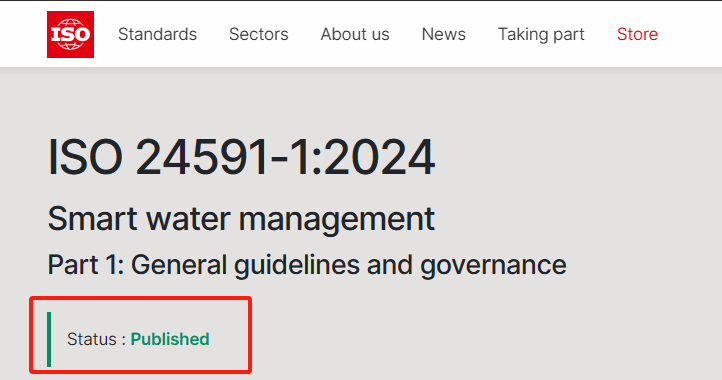 《智慧水务管理—第1部分 通用指南》ISO官网发布信息